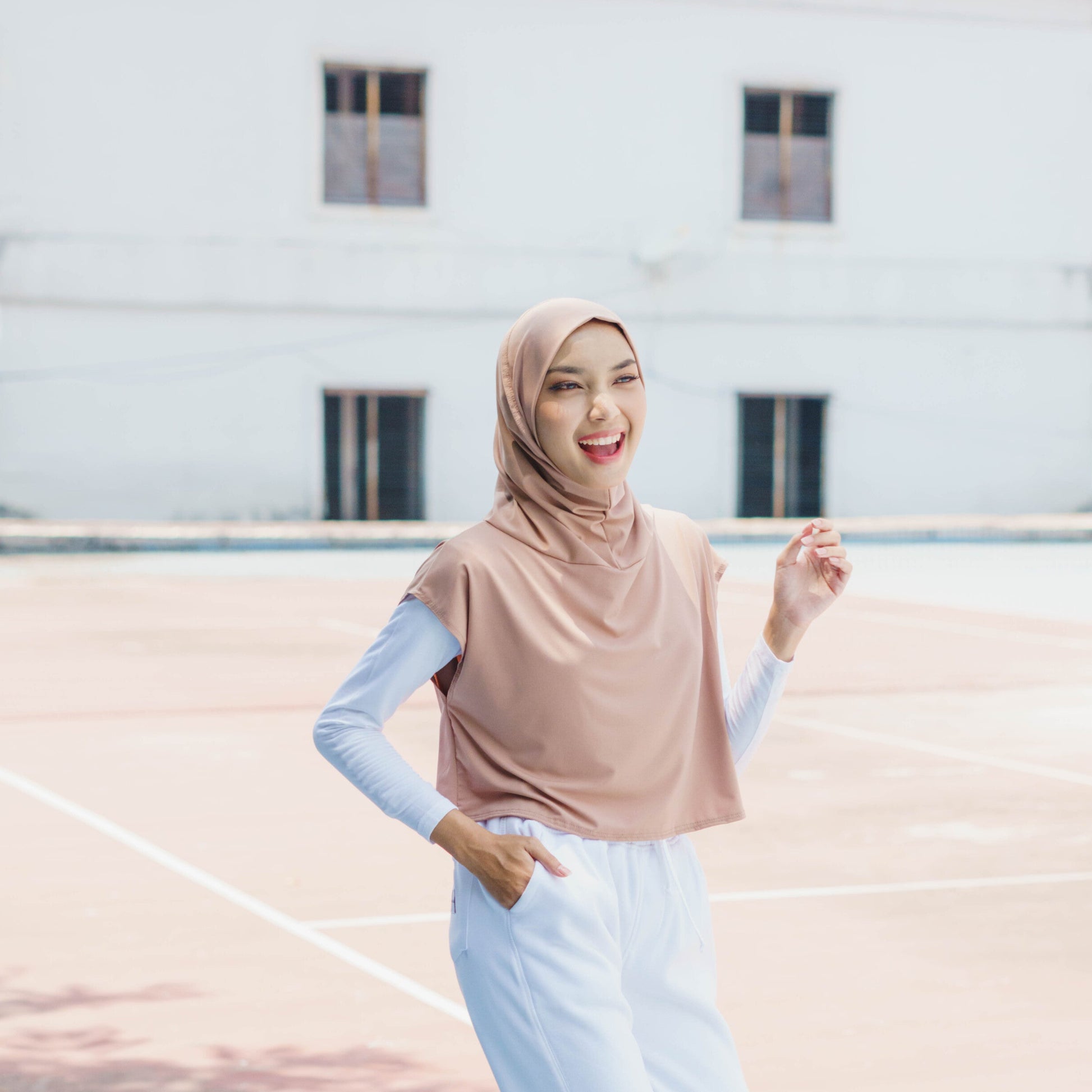 Hijab olahraga yang anti gerah & anti tembem! Desain fit tapi tetap menutup dada, bikin nyaman dipakai olahraga indoor maupun outdoor. Stylish, adem, dan siap nemenin aktivitas harian kamu!