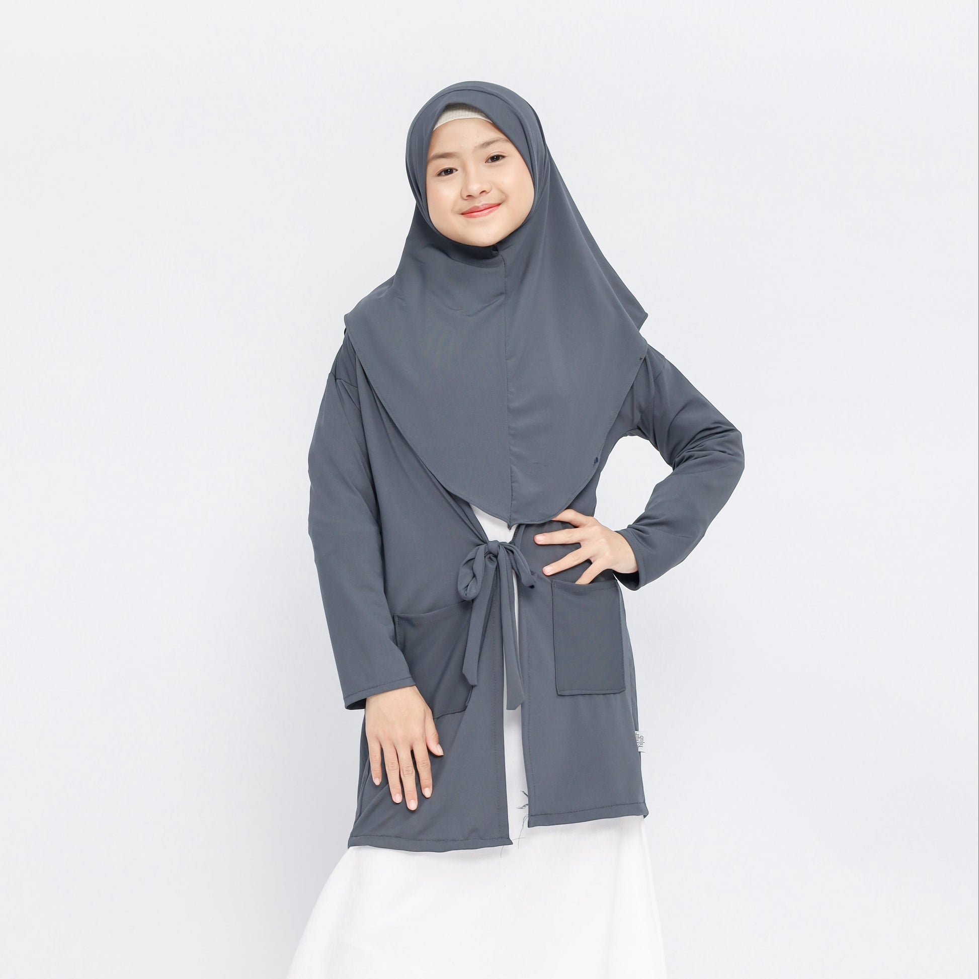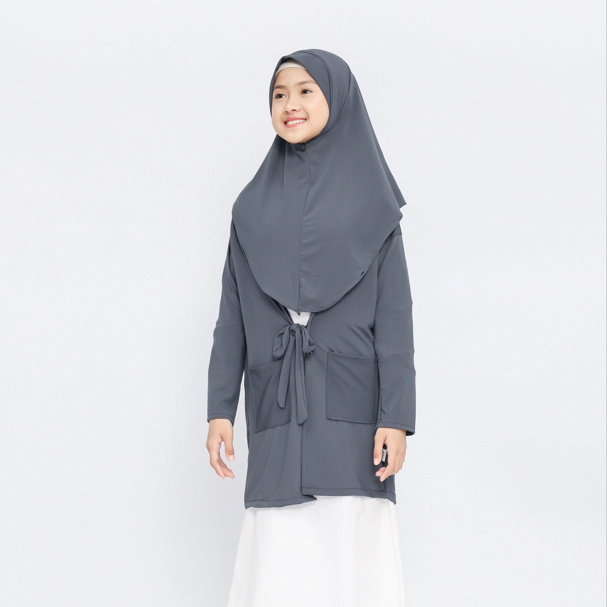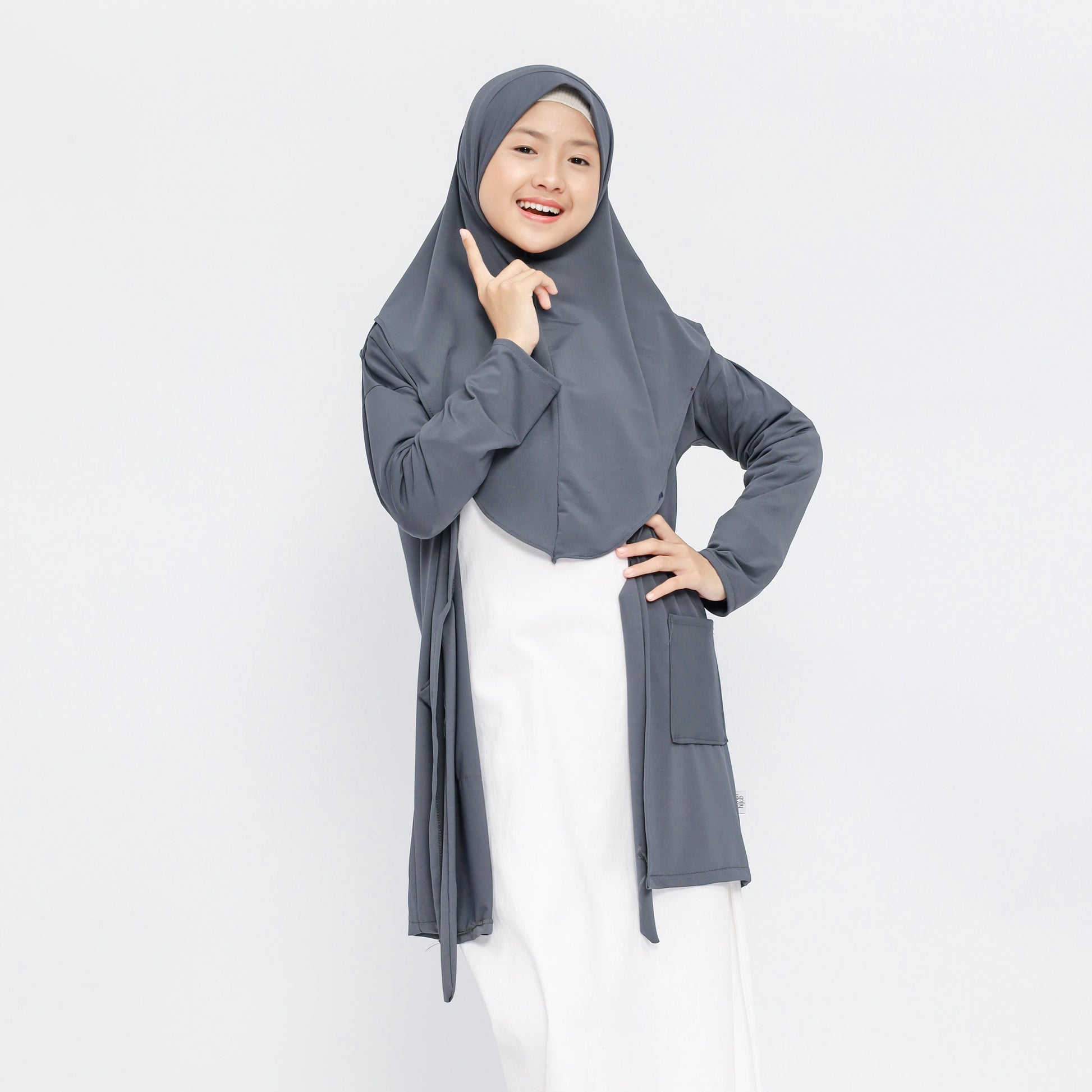 Hijab + cardigan jadi satu! Desain simpel, unik, dan praktis, tinggal pakai dalam hitungan detik. Cocok untuk anak aktif yang tetap ingin tampil rapi dan syar'i setiap hari.